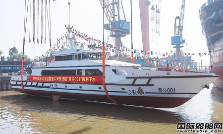 近日,由常州玻璃鋼造船廠有限公司為青島市公安局建造的青島公安新型40米級高速執法指揮船“青公001”在揚州舉行了下水儀式。