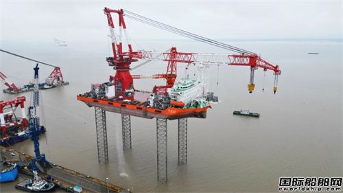振華重工建造1600噸自升式風電平臺完成升降系統全行程試驗