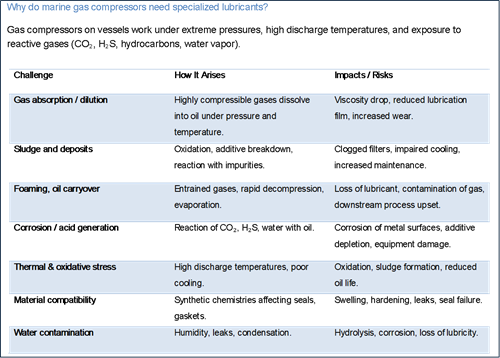 In the demanding world of marine operations, gas compressors are mission-critical, powering cargo handling, fuel gas supply, and safety. Yet, operators and technical superintendents face persistent challenges: oil dilution from hydrocarbon gases, viscosity loss, sludge and varnish formation, and the ever-present threat of corrosion from salt-laden air.