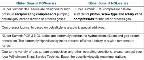 Klüber Summit PGS & NGL-series compressor oils are engineered to solve these issues. Formulated with advanced polyalkylene glycol (PAG) base oils and a robust additive package, both the PGS & NGL-series deliver outstanding resistance to gas dilution and oxidation, maintaining optimal viscosity and protecting against wear, even under severe operating conditions. This means longer oil drain intervals, reduced maintenance frequency, and lower total cost of ownership.
