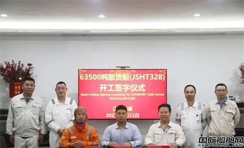 8月11日上午, 由海通海洋建造的一艘63500噸散貨船(船體號:JSHT328)順利開工。船東、船級社、貝仕海事及公司領導參加了該儀式。