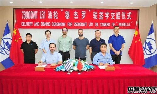 8月20日上午,揚(yáng)子江船業(yè)集團(tuán)新?lián)P子造船為船東Evalend建造的首制75000載重噸LR1型油船“MUGELLO”輪,解纜離開船廠碼頭,交付投入運(yùn)營(yíng)。
