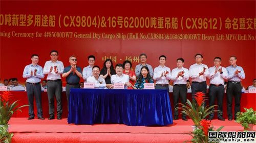 9月11日,中船集團旗下中船澄西船舶修造有限公司為中信金融租賃有限公司建造的4號84500噸干散貨船和為交銀金融租賃有限責任公司建造的16號62000噸重吊多用途船在中船澄西揚州公司同日命名交付。、...