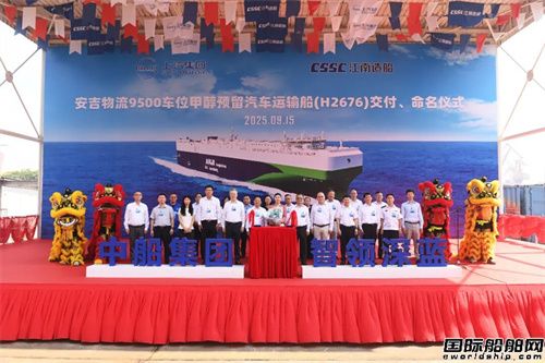 9月15日,中國船舶集團江南造船聯合中船貿易為安吉物流股份有限公司建造的9500車位甲醇預留汽車運輸船系列船首制船(H2676船)正式命名為“安吉茂盛”,并于當日簽字交付。