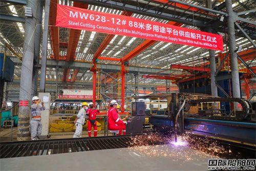 9月15日,福建船政旗下馬尾造船建造的88米多用途平臺供應船(MW628-12)順利開工。