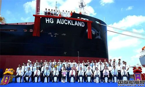9月15日上午,蓉達航運集團新一批4 05萬噸定制船舶之一“HG AUCKLAND”在江門南洋船舶碼頭順利命名。
