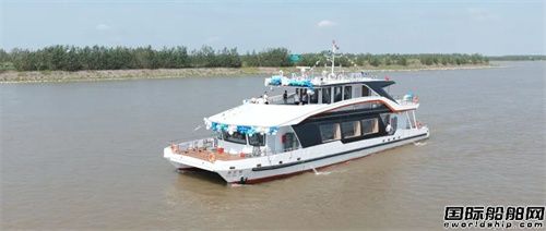 “采石磯號”是蕪湖造船廠旗下三點水新能源科技公司圍繞安徽省智慧文旅場景,長江岸線的生態(tài)與人文之美,深度融合“江景觀光 + 文化體驗 + 交通接駁”多功能需求而設(shè)計開發(fā)的首艘綠色化智能化城市觀光客船。該船長26.8 米,采用了純電驅(qū)動系統(tǒng),配備6組118.27kwh鋰電池組,航行過程靜謐、全程零碳排放。核載船員及游客為100人。