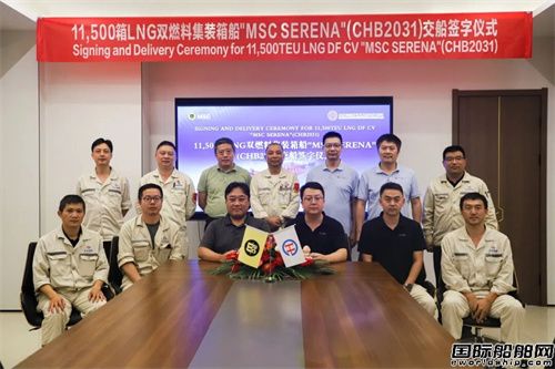 值得一提的是,9月24日14時28分,雙方已通過視頻連線方式簽署交船文件,“地中海·塞麗娜(MSC SERENA)”輪成功交付船東。