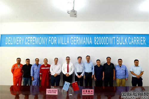 9月29日,京魯船業為Laskaridis Maritime公司建造的82000DWT散貨船“VILLA GERMANA”輪正式交付,該系列船至此圓滿收官。京魯船業黨委書記、總經理王轟與Laskaridis Maritime公司代表Mr.