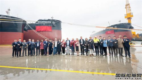 10月9日,恒力重工隆重舉行兩艘18.1萬載重噸散貨船“UETLIBERG”和“ZUGERBERG”號、以及8.2萬載重噸散貨船“LEONARDO”號命名儀式,這也是恒力重工短期內第二次為三艘新船同時命名,持續展現了多型船批量化建造、節拍化交付能力。