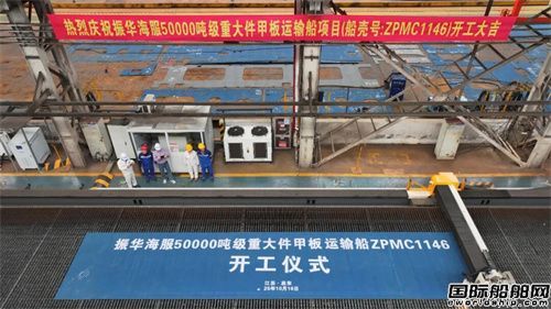 10月16日,上海振華重工集團自建的5萬噸級重大件甲板運輸船“振華38”輪在振華海工舉行開工儀式,標志著我國在高端重大件海運裝備領域實現新突破。