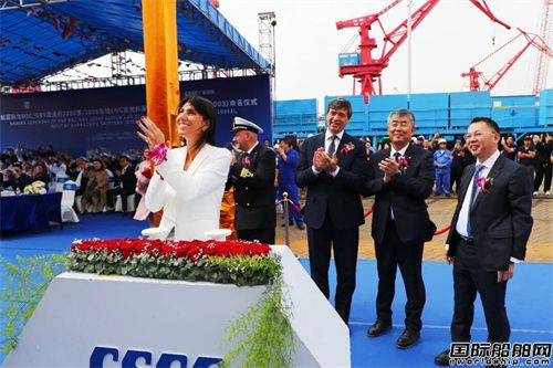 周旭輝在命名儀式上致辭道:“此次命名的這艘船是同系列船中的第三艘船。而這三艘船,每一艘都是‘獨家定制’。從增加LNG雙燃料、增加房間,到公共區域調整優化,廣船國際始終以 MSC 需求為核心,24 小時響應、全力攻堅,這份擔當背后,是廣船國際一直秉持的信念:‘己欲立而立人’。我們深信,唯有成就伙伴,才能共同成長。此次命名的這艘船,也是廣船國際向地中海航運交付的第十艘船,其中7艘是16000TEU集裝箱船。面向未來,廣船國際期盼與地中海航運開啟更多合作篇章。從綠色航運技術的深化突破,到智能船舶的創新探索,我們愿以更開放的姿態,與地中海航運及全球伙伴一道,讓‘各美其美,美美與共’的智慧,融入智能、低碳、可持續的航運新圖景。”