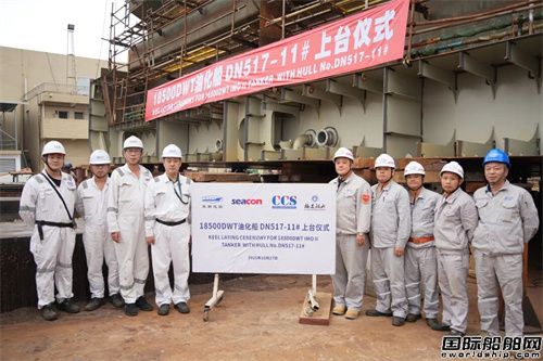 繼2艘18500DWT油化船(DN517-8/10)于10月25日分別完成下水、開工后,10月27日,福建船政旗下東南造船建造的18500DWT油化船(DN517-11)順利上船臺。