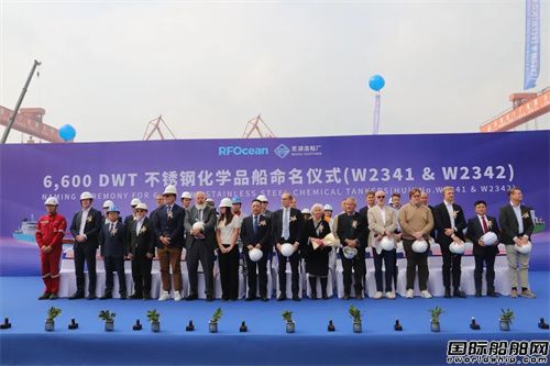 2025年10月27日上午,蕪湖造船廠為挪威RFOcean公司建造的6600噸直流電推雙相不銹鋼化學(xué)品船一號船“RF RAN”與二號船“RF VAR”舉行盛大命名儀式,船東RFOcean公司董事長Frederik Rye-Florentz及其合作伙伴共同見證這一里程碑時刻。