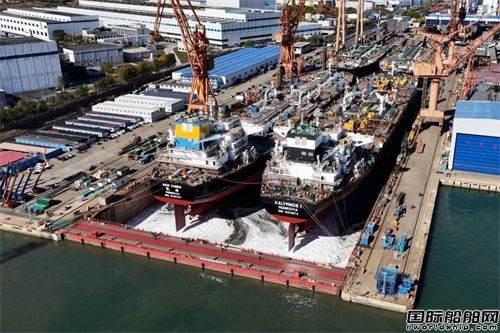 11月3日,大連造船山船重工造船迎來年度第六批次出塢大節點,11.5萬噸成品油船56號船、11.5萬噸原油船8號船出塢,11.5萬噸成品油船57號、58號船半船漂浮。