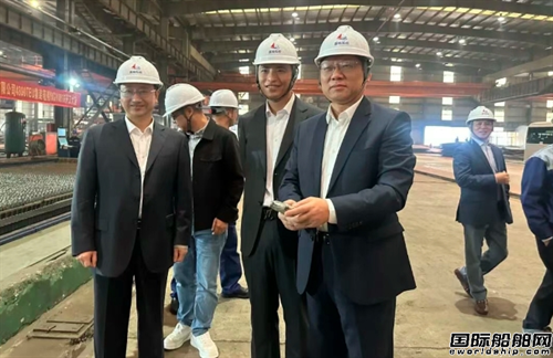 儀式上,趙晏總裁對雙船開工表示祝賀,肯定了揚州國裕在高附加值船舶建造領域的實力與潛力。他表示,CCS將以專業技術為支撐,全程提供高效優質的檢驗檢測服務,助力兩艘新船實現綠色化、智能化建造目標。莊重總經理也表態,南京分社將緊密對接項目需求,嚴把質量關,保障建造工作規范推進。上海船舶設計院副院長周志勇作為設計方代表致辭,他表示設計院將充分發揮技術優勢,緊密配合建造進程,為兩艘船舶的設計優化與技術保障提供全力支持,區域經理岑漢倫陪同參與相關交流。