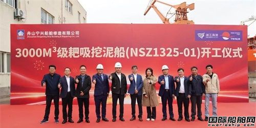 2025年11月8日,浙江海建港航工程有限公司投資建造的3000立方米級耙吸挖泥船開工儀式在舟山寧興船舶北侖環;芈≈嘏e行。