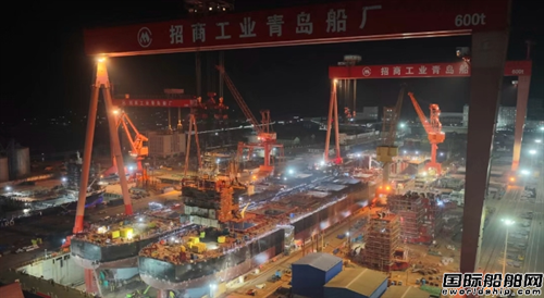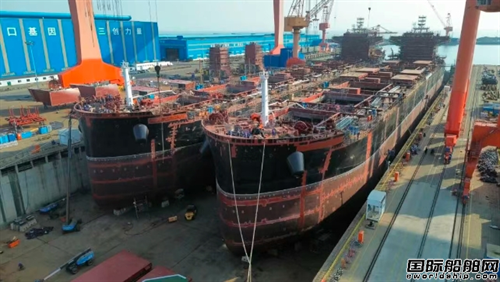 招商工業青島船廠兩艘82000噸散貨船主船體合攏成型