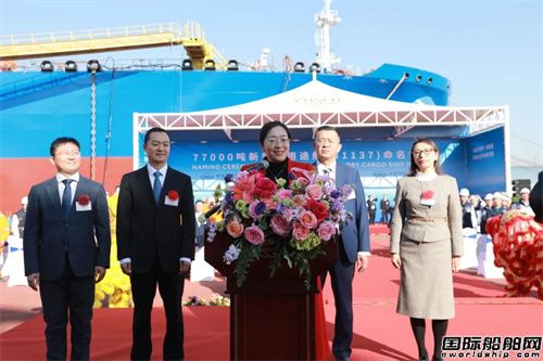 中信金租 、中遠海運特運、中遠海運重工、中國船級社大連分社、上海船舶設計研究院、中遠海運船貿、廣州中遠海運船技、天津中散船舶管理有限公司、大連中遠海運重工等單位嘉賓出席命名儀式。任志梅女士為船舶命名并擲香檳禮。