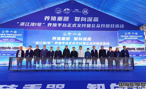11月19日,天海防務全資子公司江蘇大津重工有限公司為湛江灣實驗室建造的全球首創漂浮式動力定位網箱型工船“湛江灣一號”在湛江灣正式交付。各級領導與專家代表共同出席,見證這一海洋養殖裝備領域的重要里程碑。