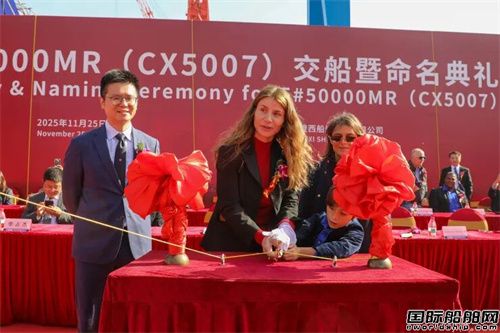 11月25日,中國船舶集團旗下中船澄西船舶修造有限公司為希臘AN TANKERS公司建造的5號5萬噸MR型油化船“LAGERI”輪(CX5007)命名交付,這是公司今年交付第22艘新造船,標志著中船澄西全年造船交付任務圓滿收官。