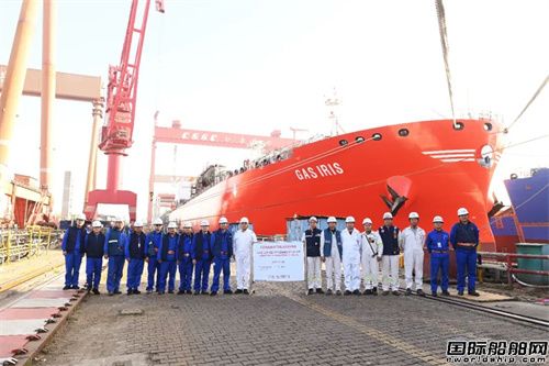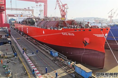“GAS IRIS”輪是江南造船為天津西南海運(yùn)建造的99000立方米VLEC 2.0版本的系列船第四艘船。該船延續(xù)前船的建造經(jīng)驗(yàn), 起浮前就實(shí)現(xiàn)了四個(gè)貨艙成型、兩個(gè)液罐吊裝,舾裝完成率94%,助力該船此次出塢實(shí)現(xiàn)“531”目標(biāo),即“五清零”(船體裝焊清零、機(jī)艙涂裝清零、主甲板房間內(nèi)裝清零、氣室清零、液罐環(huán)氧澆注清零)、“三網(wǎng)通”(管網(wǎng)通、電網(wǎng)和信息網(wǎng)通)和發(fā)電機(jī)待試的目標(biāo)基礎(chǔ)上,出塢前機(jī)艙發(fā)電機(jī)調(diào)試完畢;液罐區(qū)域?qū)崿F(xiàn)環(huán)氧清零;甲板區(qū)域壓縮機(jī)房外板涂裝結(jié)束。