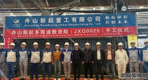 12月1日上午,舟山新起重工有限公司(Zhoushan NewRising Jinhai Shipbuilding Co., Ltd NRJH)為浙江明航船務有限公司建造的多用途船(JXQ0025)在舟山新起重工長涂基地下料車間正式點火開工。浙江明航船務有限公司領導顧紅飛女士、鄔建波先生及現場監造組成員,中國船級社岱山區經理張棟先生,舟山新起重工有限公司領導劉星先生、生產副總經理季芳樹先生、安全副總經理陳紅濤先生及各部門代表共同出席,見證該船點火開工。