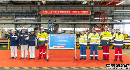 12月2日,招商工業威海船廠為Stena船東建造的第15艘高端客滾船(W0288項目)開工。船東現場副經理Jonas Melin、DNV威海新造船和產品檢驗經理王紅日、招商工業威海船廠副總經理商成剛現場見證。