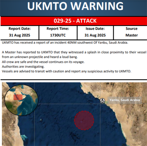 據(jù)英國海上貿(mào)易行動組織(UKMTO)通報,涉事油輪當日向其反饋關(guān)鍵信息:“一枚不明投射物在船舶近距離水域濺起水花,同時船員聽到巨大爆炸聲”。