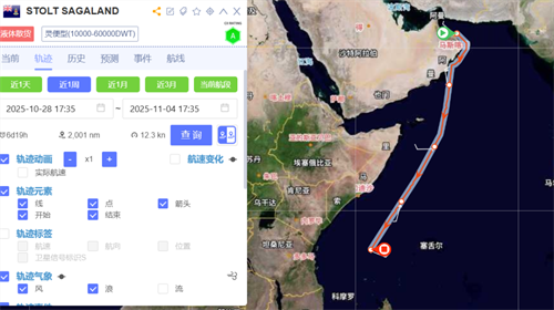 ▲“Stolt Sagaland”輪近一周軌跡,圖源:船視寶