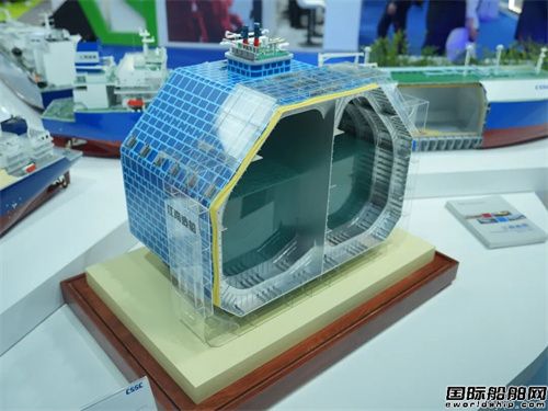 早在2023年,江南造船研發設計的搭載“Brilliance®II”圍護系統超大型LNG運輸船就獲得了美國船級社(ABS)的AiP認可,之后江南造船加快推進船型研發和設計工作,并完成了該船型圖紙的預送審,此次展會美國船級社(ABS)又頒發了AAIP認證,這標志著江南在大型LNG運輸領域取得又一重要突破。這款LNG運輸搭載著江南造船完全自主研發的“Brilliance®II”圍護系統,其創新的獨立液貨艙設計,采用菱形多面體構造,可確保結構的安全可靠性。