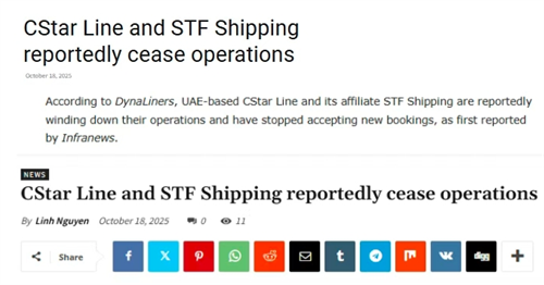 據(jù)多家媒體報道,總部位于阿聯(lián)酋的集運企業(yè)CStar Line及旗下集運公司STF Shipping,正計劃結(jié)束業(yè)務(wù),并已停止訂艙。