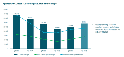 KCC首席執(zhí)行官Engebret Dahm表示,“在經(jīng)歷了相對(duì)疲軟的上半年之后,第三季度CABU和CLEANBU船隊(duì)的收益和盈利能力都有了顯著改善。2025年第四季度和2026年的前景仍然樂(lè)觀,這得益于更強(qiáng)勁的市場(chǎng)、CLEANBU新客戶的加入,以及明年合同續(xù)簽的良好前景。”