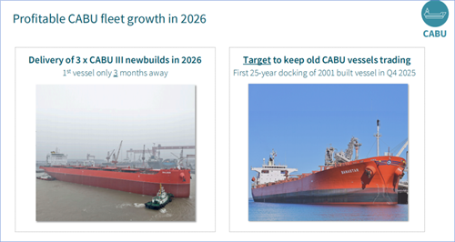 2025年三季度,CABU混裝船隊(duì)日平均TCE達(dá)到30062美元,CLEANBU混裝船隊(duì)日平均TCE達(dá)到27740美元。