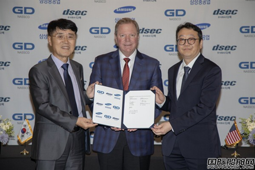 在12月3日至5日舉行的美國新奧爾良國際工作船展覽會(The International Workboat Show) 期間,三星重工與美國通用動力國家鋼鐵與造船公司(General Dynamics NASSCO)以及韓華海洋子公司DSEC(Daewoo Ship Engineering Company)簽訂了三方業務合作協議。三方將把合作范圍擴展至船舶設計、設備配套供應、人才培養等領域,并就美國海軍“新一代軍需支援艦(Next Generation Logistics Ship) ”的聯合投標進行探討。