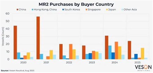 報告指出,中國買家在交易總量上占據主導,并聚焦于老舊VLCC;韓國船東則側重于逆周期收購船齡居中段的船舶;而日本買家大多規避老舊VLCC,轉而青睞被認為更具靈活性的新型MR2油輪。這些迥異的策略反映了各國在融資結構、監管約束與長期戰略重心上的差異,也表明超越短期周期的結構性力量正在對市場進行深刻的重新定義。這些趨勢凸顯了亞洲資本正在重塑航運投資的游戲規則。