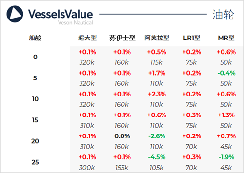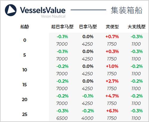 10.13 - 10.17:本周,船齡中等及偏老的靈便型船和次巴拿馬型船價值出現(xiàn)上漲,同期同類新造船價值也有所上升。該板塊其余船型價值保持穩(wěn)定。