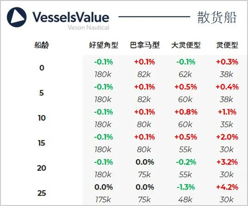 11.10 - 11.14:本周VV散貨船價值大部分保持穩定,但由于"Chamchuri Naree"等交易,較老舊的靈便型散貨船價值出現上漲。