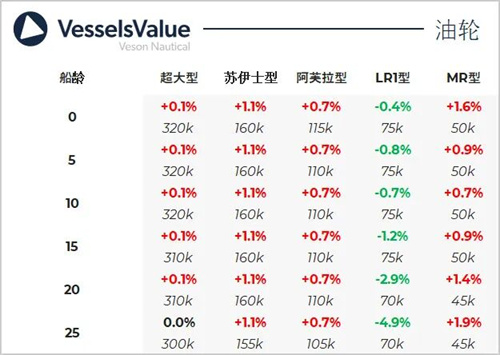 11.17 - 11.21:本周VV油輪價值大部分保持穩(wěn)定,二手船及新造船市場保持活躍,本周報(bào)告兩筆MR型油輪批量交易。