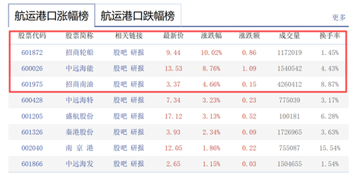 VLCC現(xiàn)貨市場(chǎng)的強(qiáng)勁反彈,正在迅速傳導(dǎo)至資本市場(chǎng),A股油輪股迎來一輪集體走高。招商輪船漲停,中遠(yuǎn)海能上漲8.76%,招商南油上漲4.66%。