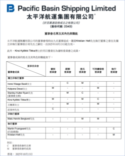 與此同時,太平洋航運(yùn)宣布,Kristian Helt先生已獲委任為公司執(zhí)行董事,自2025年10月13日起生效。