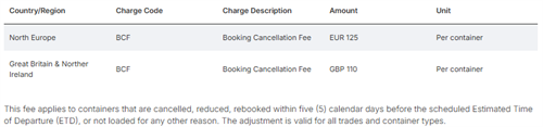 該費(fèi)用適用于以下情況:在預(yù)定預(yù)計離港時間前5個日歷日內(nèi)取消訂艙、減少箱量、重新訂艙,或因任何其他原因未能裝船的集裝箱。此項(xiàng)費(fèi)用適用于所有航線和集裝箱類型。