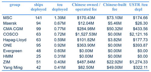 Rasmussen指出,盡管被征收船舶的運力占總量的44%,美國的進出口商無需擔心運費上漲。在這些可能被征費的船舶中,約七成為中國擁有或運營,另有三成是在中國建造。不過,其中超過一半的中國建造船舶由于船型較小或屬美資所有,將可獲得豁免。