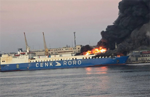據社交媒體視頻驗證畫面中船舶特征與“Cenk T”輪相符,背景設施也與切爾諾莫斯克港的衛星圖像吻合。