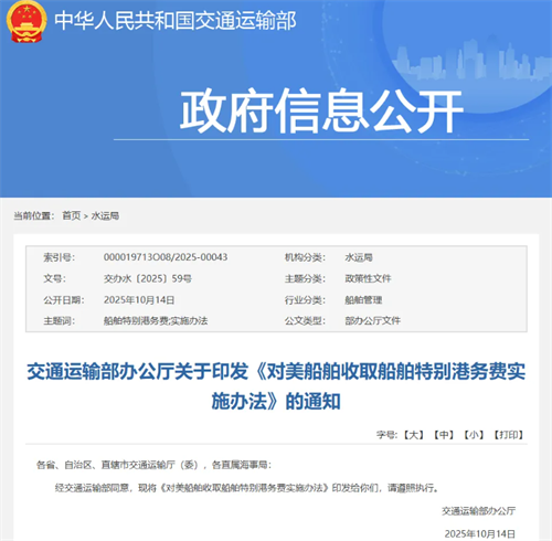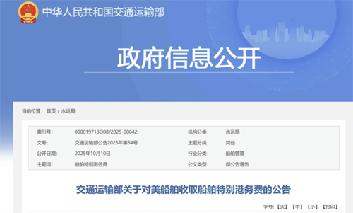 10月10日,交通運輸部發布《交通運輸部關于對美船舶收取船舶特別港務費的公告》(以下簡稱《公告》),一石激起千層浪。這份不到600字的政策文件,在全球航運圈掀起了驚濤駭浪。