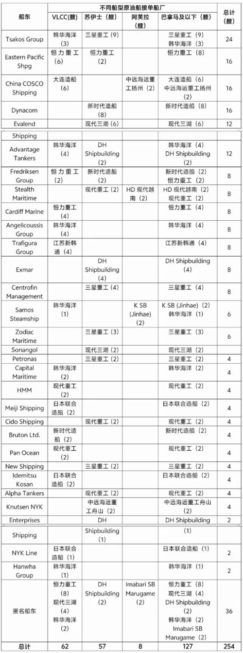 表1 2025年初至今全球原油船下單船東及接單船廠