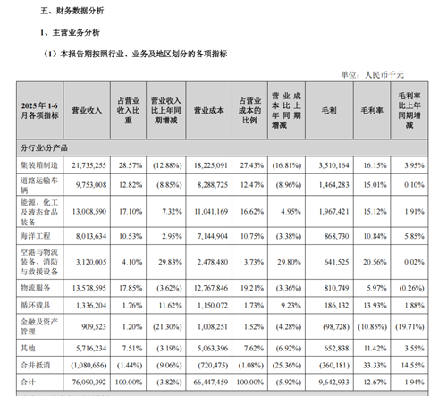 此外,報告顯示,上半年中集集團營業(yè)收入達760.9億元,同比下降3.82%;實現(xiàn)凈利潤17.64億元;歸母凈利潤約12.78億元,同比大增47.63%。
