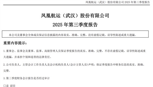 10月27日,鳳凰航運(武漢)股份有限公司(證券代碼:000520,以下簡稱“鳳凰航運”)披露2025年第三季度報告。